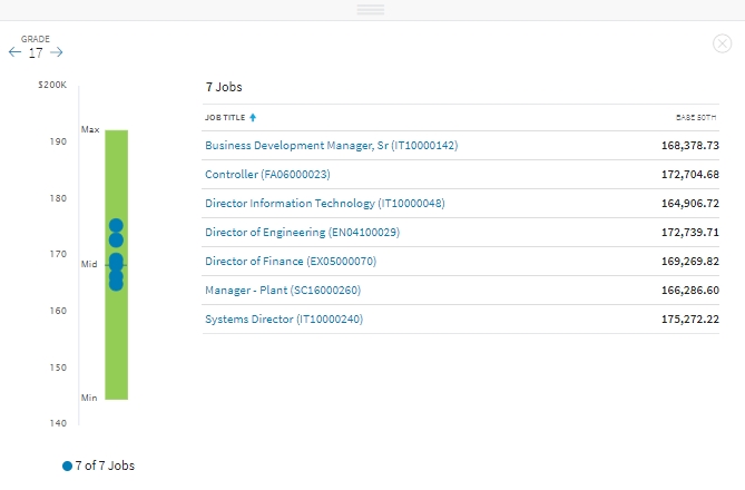 Forecast Costs: Quickly understand how much it would cost to bring employee salaries to the market rate. Forecast costs associated with changing structures or adjusting individual employee pay.