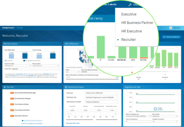 CompAnalyst® streamlines the pricing process and delivers critical insights that keep you competitive in today's talent market. CompAnalyst's dashboard is fully customizable so you have the data you need at your fingertips.