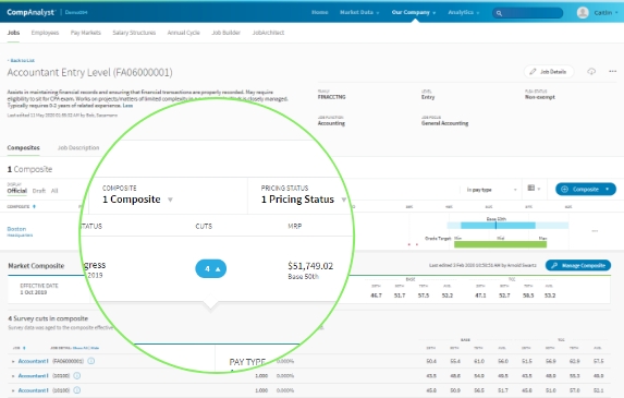 Suggest Survey Cuts: CompAnalyst® automatically recommends job matches and survey cuts for your composites.